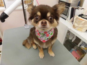 トリミングコースをご利用のチワワのチョコちゃん?