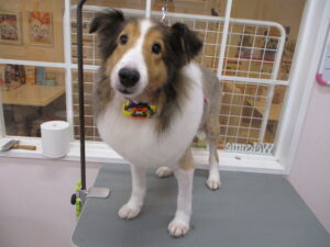 ホテル&トリミングコースをご利用のシェルティのベルくん?