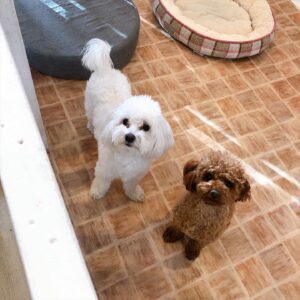 ホテルをご利用のトイプードルのちょこちゃんとMIXのこたろうくん?