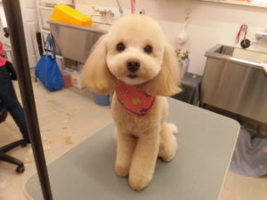 トリミングコースをご利用のプードルのマロンくん?
