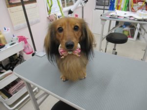 トリミングコースとハーブパックをご利用のダックスフンドの花ちゃんです?