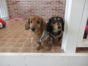 ホテルをご利用のダックスフンドの翼くんとすずちゃんです?