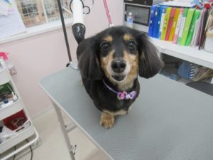 トリミングコースをご利用のダックスフンドのみゅうちゃんです?
