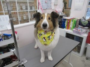 ホテル&トリミングコースをご利用のシェルティのベルくん?