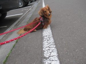 ホテルをご利用のダックスのフォルテくん?