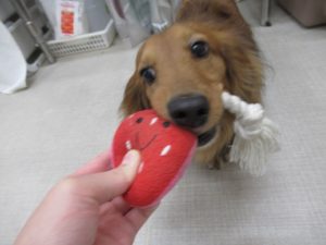 ホテルをご利用のダックスのフォルテくん?