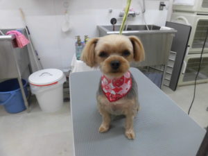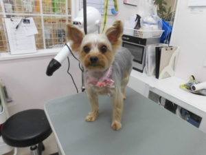 トリミングコースをご利用のヨークシャテリアのさくらちゃん?