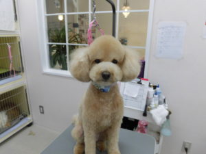 トリミングコースご利用のトイプードルのラッキーくんです?
