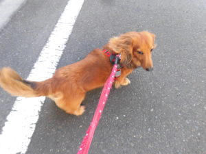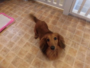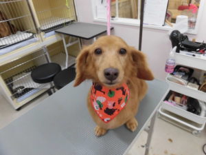 ホテルとトリミングコースをご利用のダックスフンドのマロンちゃん?