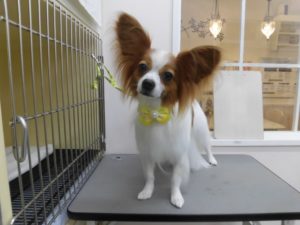 シャンプーコースをご利用のパピヨンのゆうくんと、
